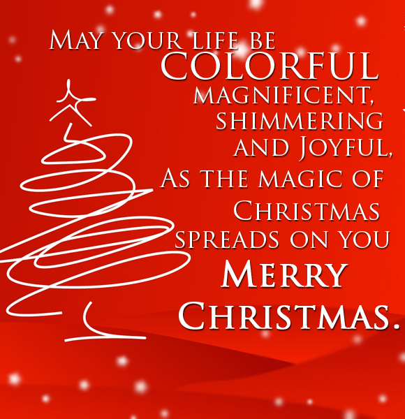 May your life be colorful magnificent, shimmering and joyful, as the magic of Christmas spreads on you Merry Christmas.